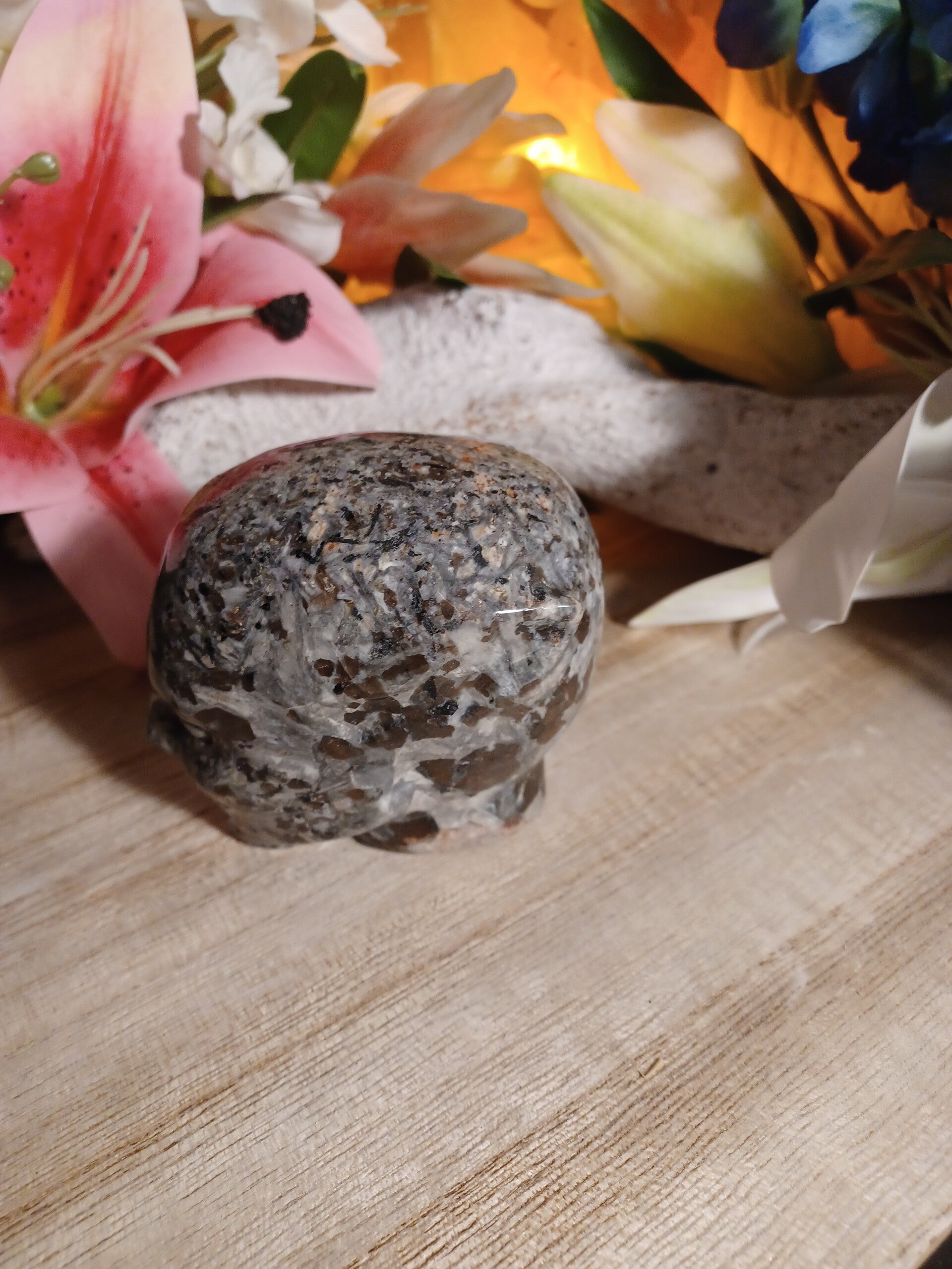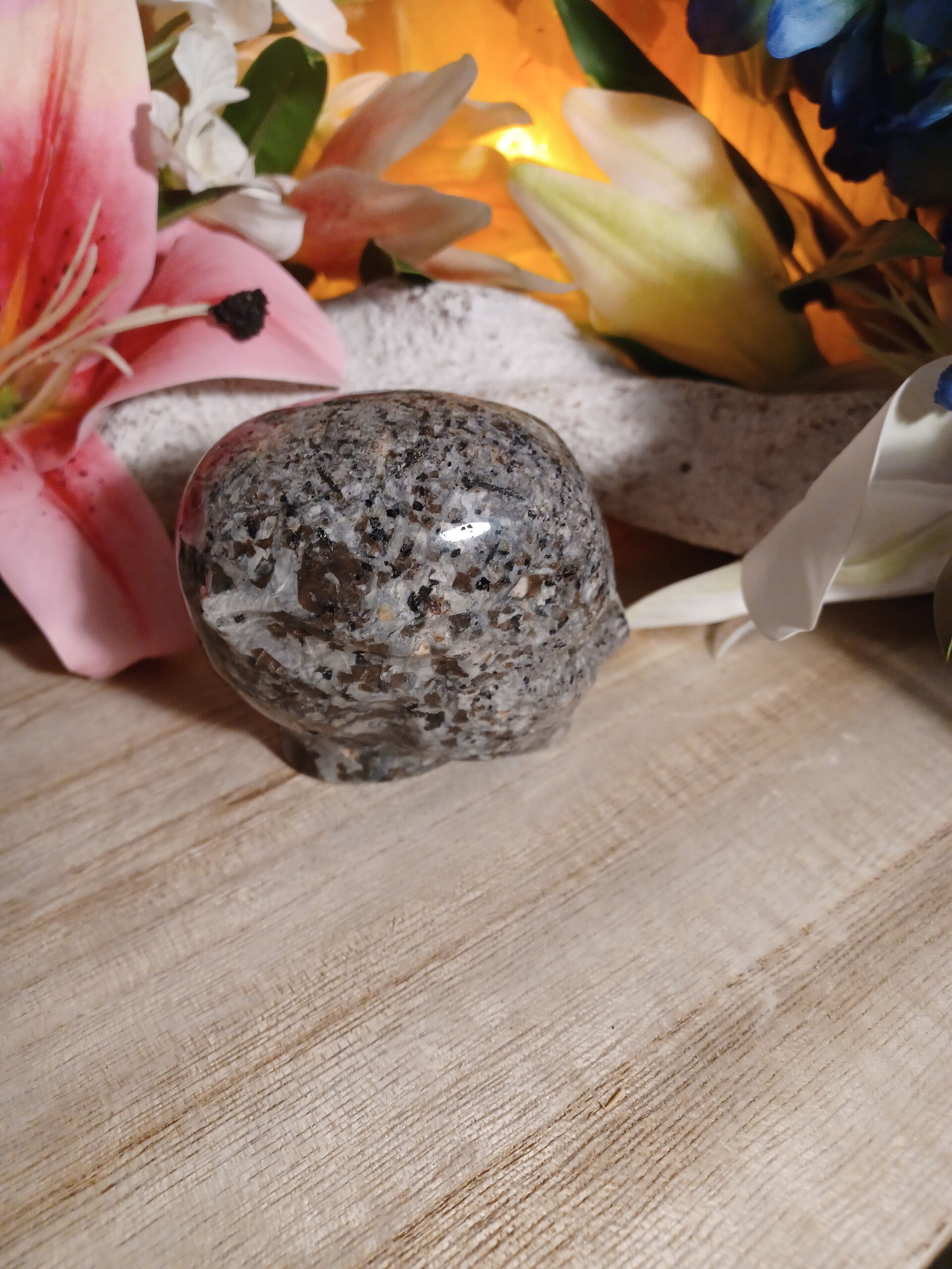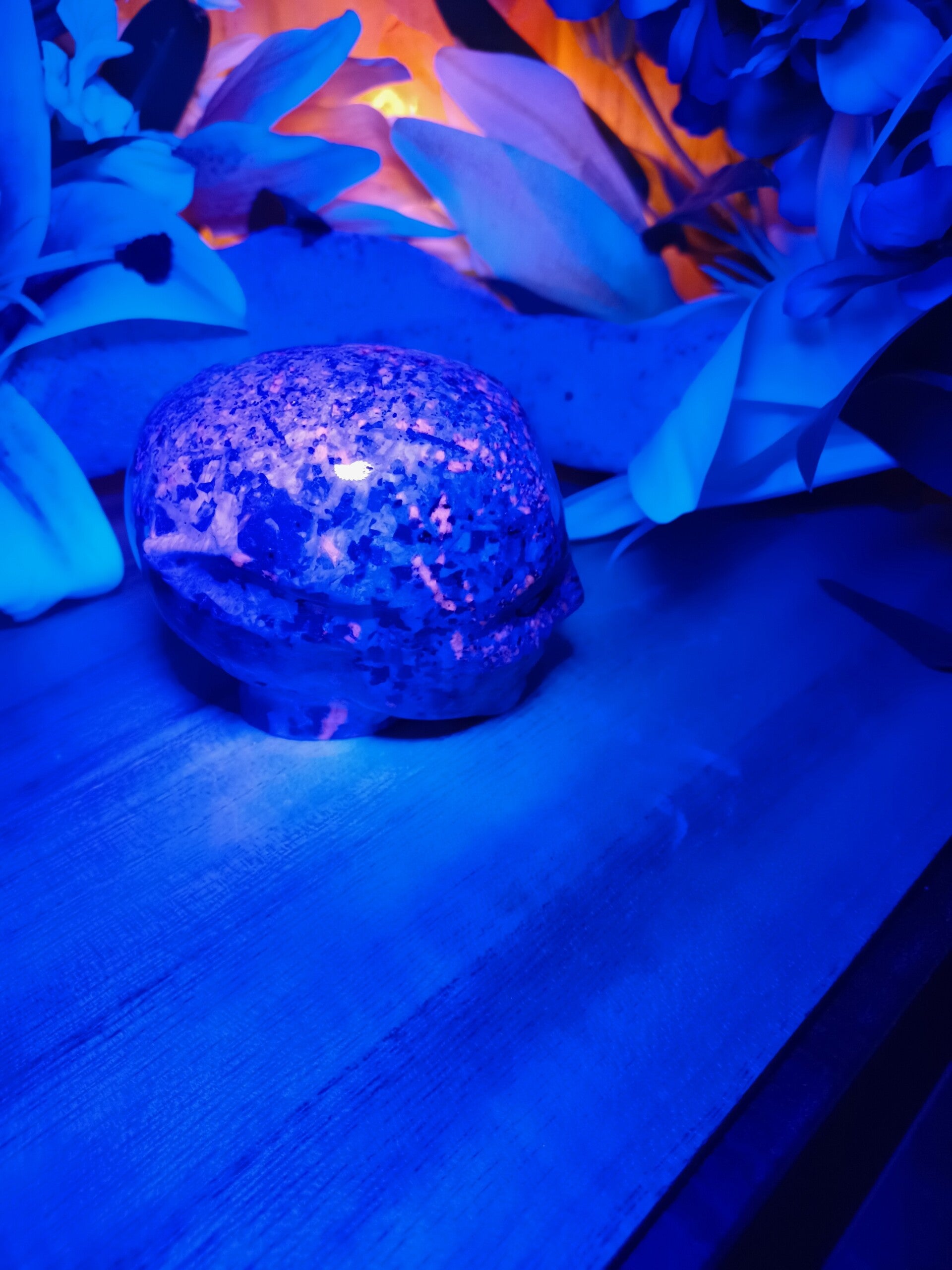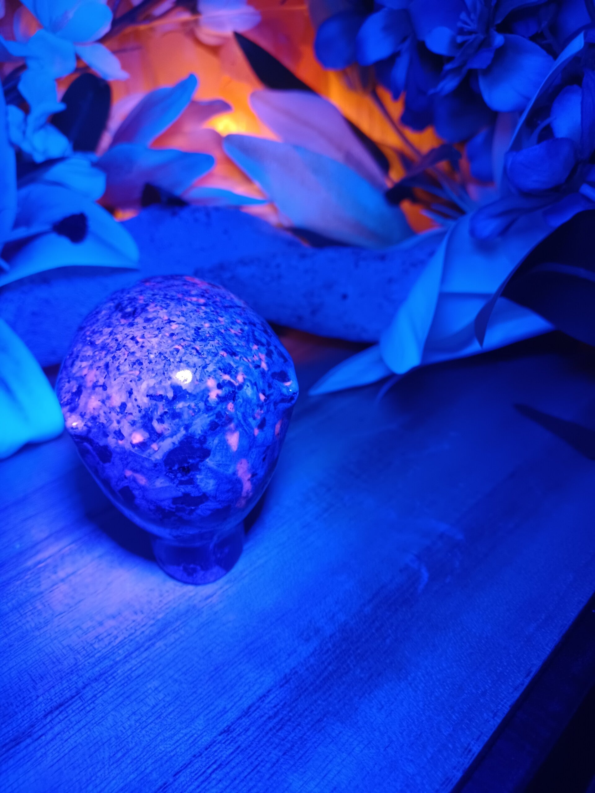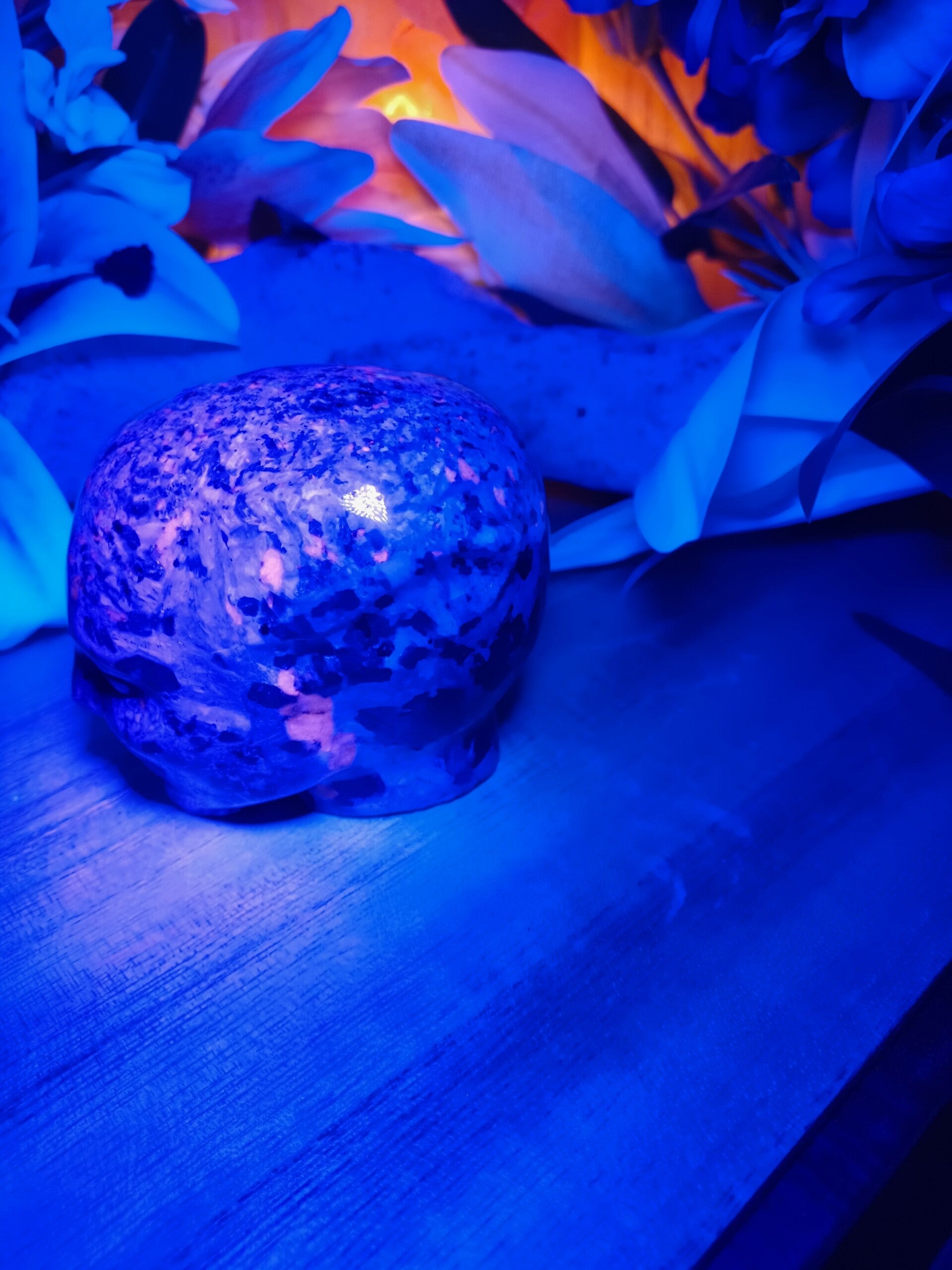 Yooperlite heeft een zeer fijne vibratie terwijl hij ook krachtig met de aarde verbonden is. Het is een steen die kracht en troost geeft en je helpt door te gaan na een moeilijke situatie. Hij snijdt banden op de verfijnde chakraniveaus door. Deze steen verenigt intuïtie met logica en heeft toegang tot de hogere geest en verbindt deze met het fysieke. Yooperlite helpt bij faalangst, vergroot je zelfrespect, zelfacceptatie en zelfvertrouwen Hij stimuleert de pijnappelklier en verdiept meditatie. Hij helpt je te transformeren en maakt je bewust van je kwaliteiten, hij helpt je tevens vreugde en vrijheid te ervaren. Psychisch helpt de steen je situaties waarin je je bevindt beter te begrijpen, je schaduwkanten te accepteren en het nut van deze ervaringen in te zien. Hij verlicht angsten, fobieën, schuldgevoelens en helpt je soepeler te worden. De steen zorgt dat je trouw aan jezelf en je overtuigingen blijft, maar dat je tevens open staat voor nieuwe mogelijkheden, hij schept ruimte voor nieuwe inzichten. Hij werkt beschermend tegen electrosmog.