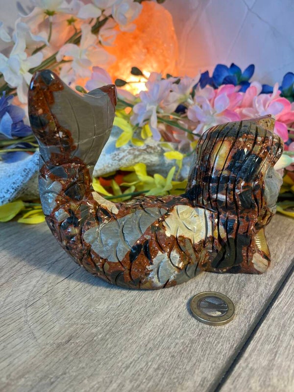 Ze weegt 983 gram is is 13 cm lang en 10.5 hoog op de staart.