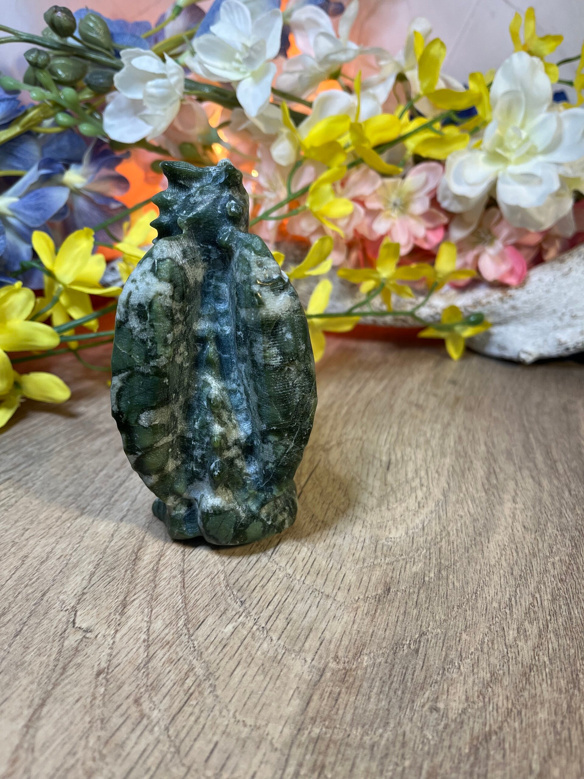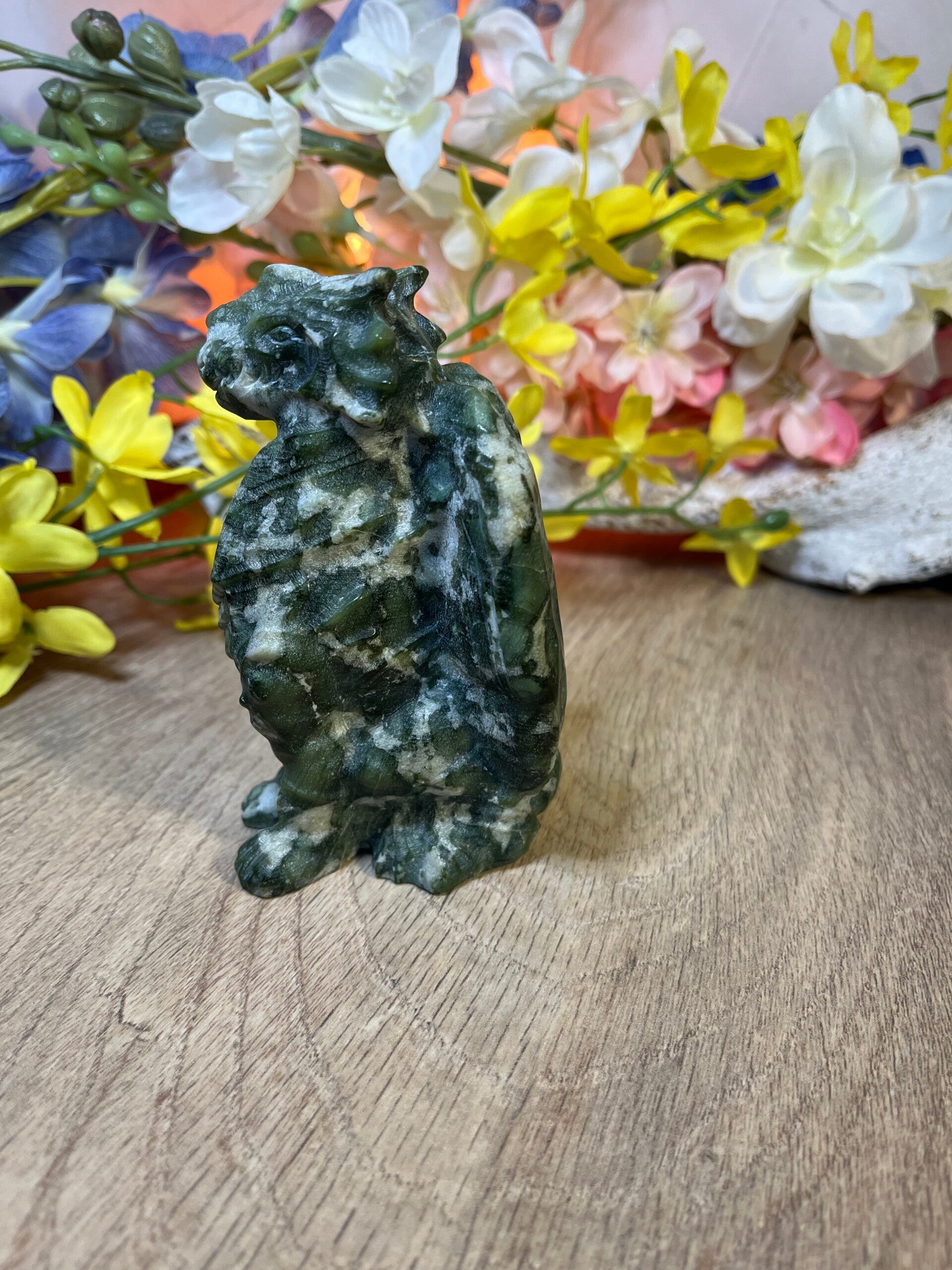 Serpentijn brengt balans in lichaam en geest en helpt negatieve energie en straling buiten houden. De steen werkt kalmerend bij nervositeit, spanningen en stress en zorgt voor innerlijke rust. Ook bij conflicten bevordert de steen evenwicht en stimuleert tot het sluiten van een compromis. Seksuele problemen veroorzaakt door gespannenheid worden verminderd. Spiritueel bevordert de steen spirituele vermogens en is zeer geschikt om een meditatie te ondersteunen.