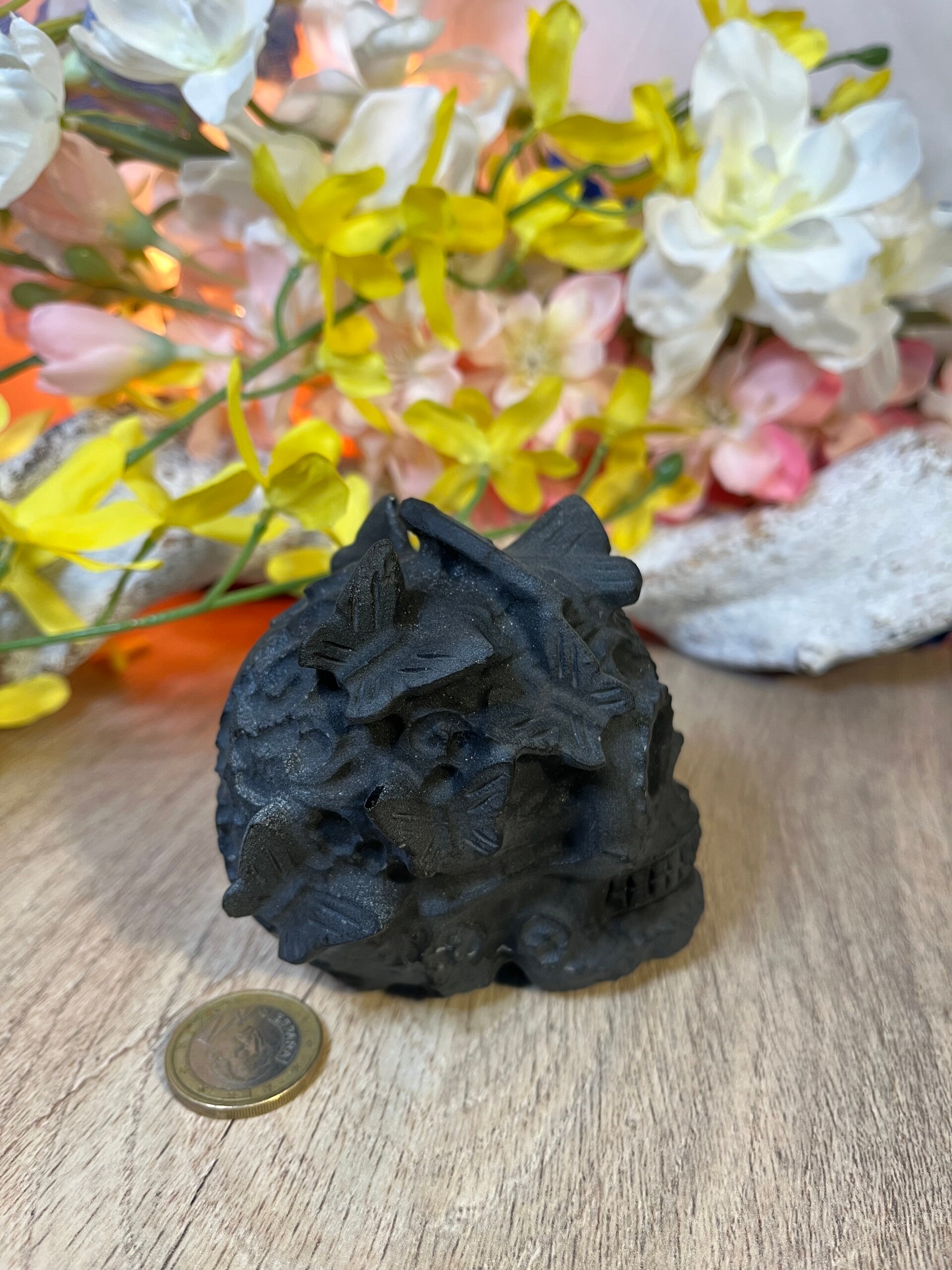Een schedel (skull) met vlinders symboliseert spiritueel de krachtige verbinding tussen leven, dood en transformatie. De schedel staat voor sterfelijkheid, de aardse eindigheid en de bewaarplaats van de ziel, terwijl de vlinder staat voor de ziel, transformatie, wedergeboorte en lichtheid. Samen vertegenwoordigen ze de schoonheid van verandering en de overgang van de ziel na het leven.