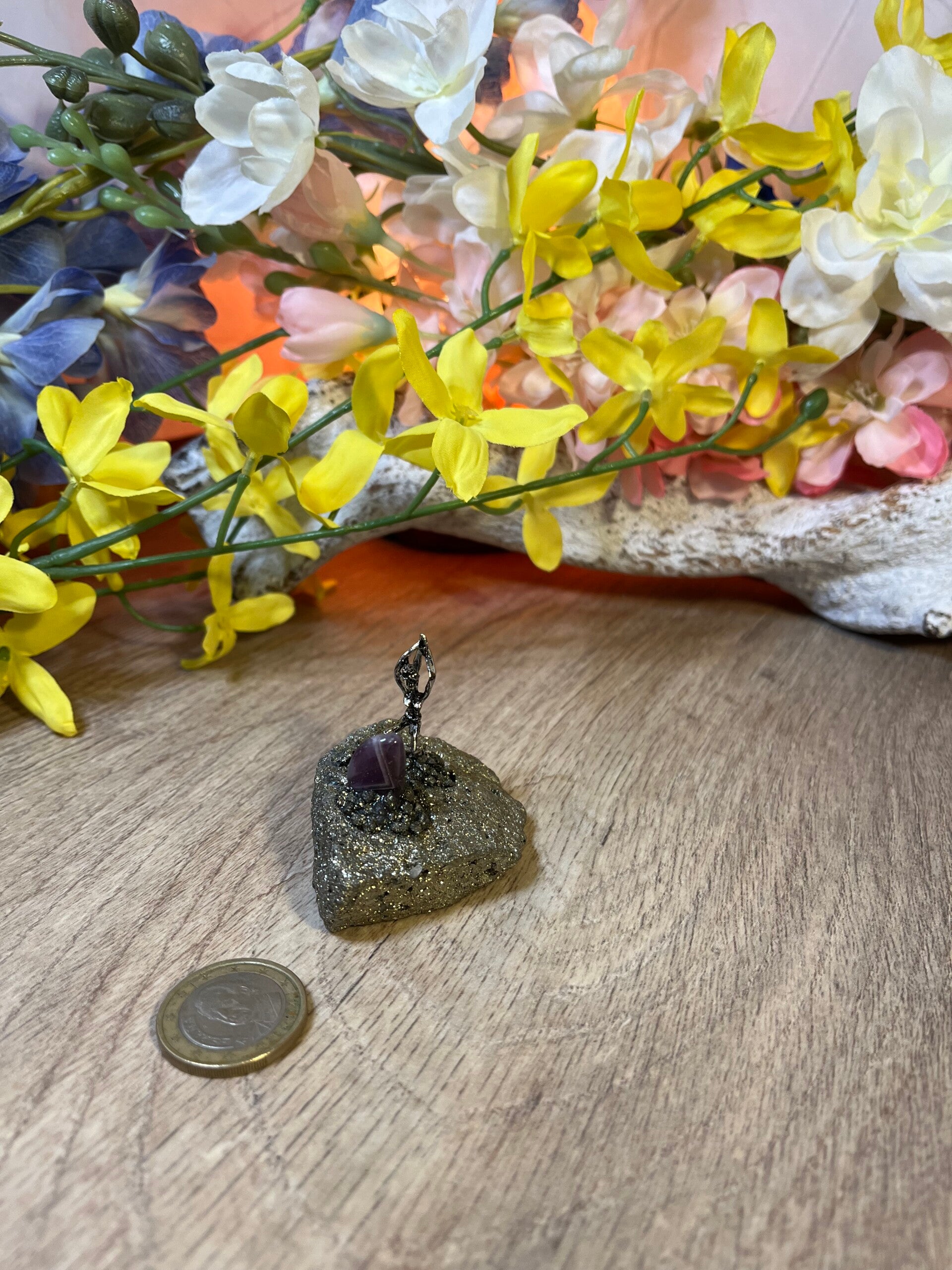 Pyriet staat spiritueel bekend als een krachtige steen van manifestatie, bescherming en wilskracht. Het stimuleert het zonnevlechtchakra, vergroot het zelfvertrouwen, helpt bij het doorbreken van negatieve patronen en trekt overvloed en geluk aan. Deze "steen van de geest" bevordert helderheid, zelfinzicht en biedt bescherming tegen negatieve energie.
