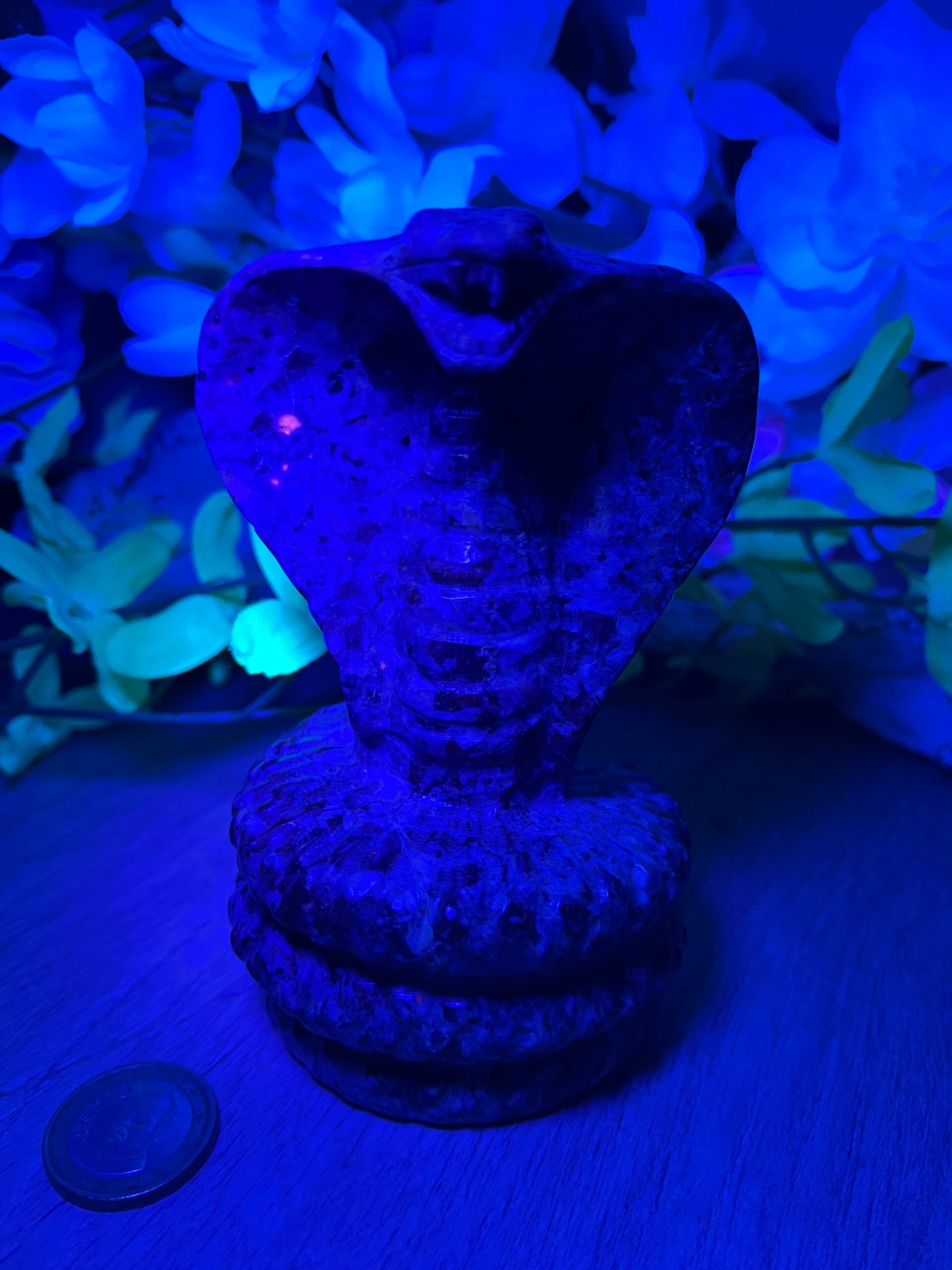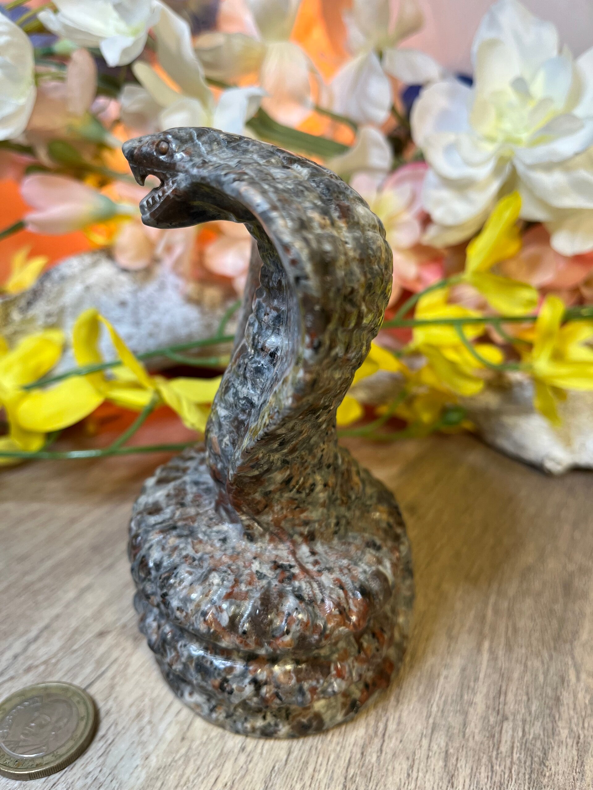 Maar de cobra is meer dan alleen kracht – zij is ook een symbool van wijsheid en intuïtie. Met haar verbinding met het derde oog chakra moedigt zij ons aan om te vertrouwen op onze innerlijke stem. In een wereld vol afleidingen herinnert de cobra ons eraan om naar binnen te keren, te luisteren naar onze intuïtie en de waarheid in onszelf te vinden.