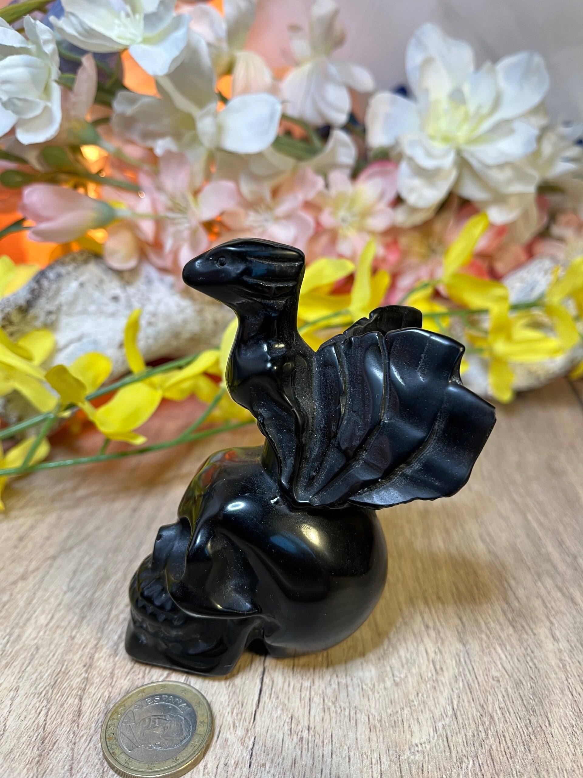 De draak is een drager van oude wijsheid en spirituele kennis. In veel mythologieën en legendes wordt de draak gezien als een wijze leraar, die diepe waarheden en verborgen kennis bewaakt. De schedel met de draak nodigt ons uit om onze eigen innerlijke wijsheid te ontdekken en om open te staan voor de mysteries van het universum.