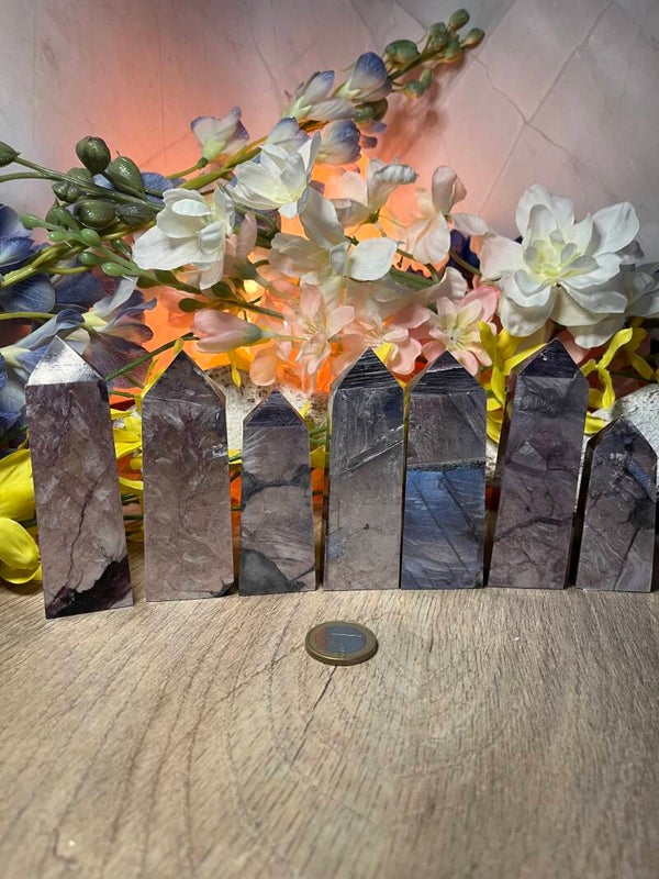 Eigenschappen: Paarse mica, of lepidoliet, is een zachte, glinsterende steen die rijk is aan lithium, wat het een kalmerende en balancerende energie geeft. Het staat bekend als een steen van emotionele genezing, spirituele groei en transformatie. Lepidoliet helpt bij het loslaten van oude patronen, angsten en stress, en bevordert een diep gevoel van innerlijke rust en acceptatie.